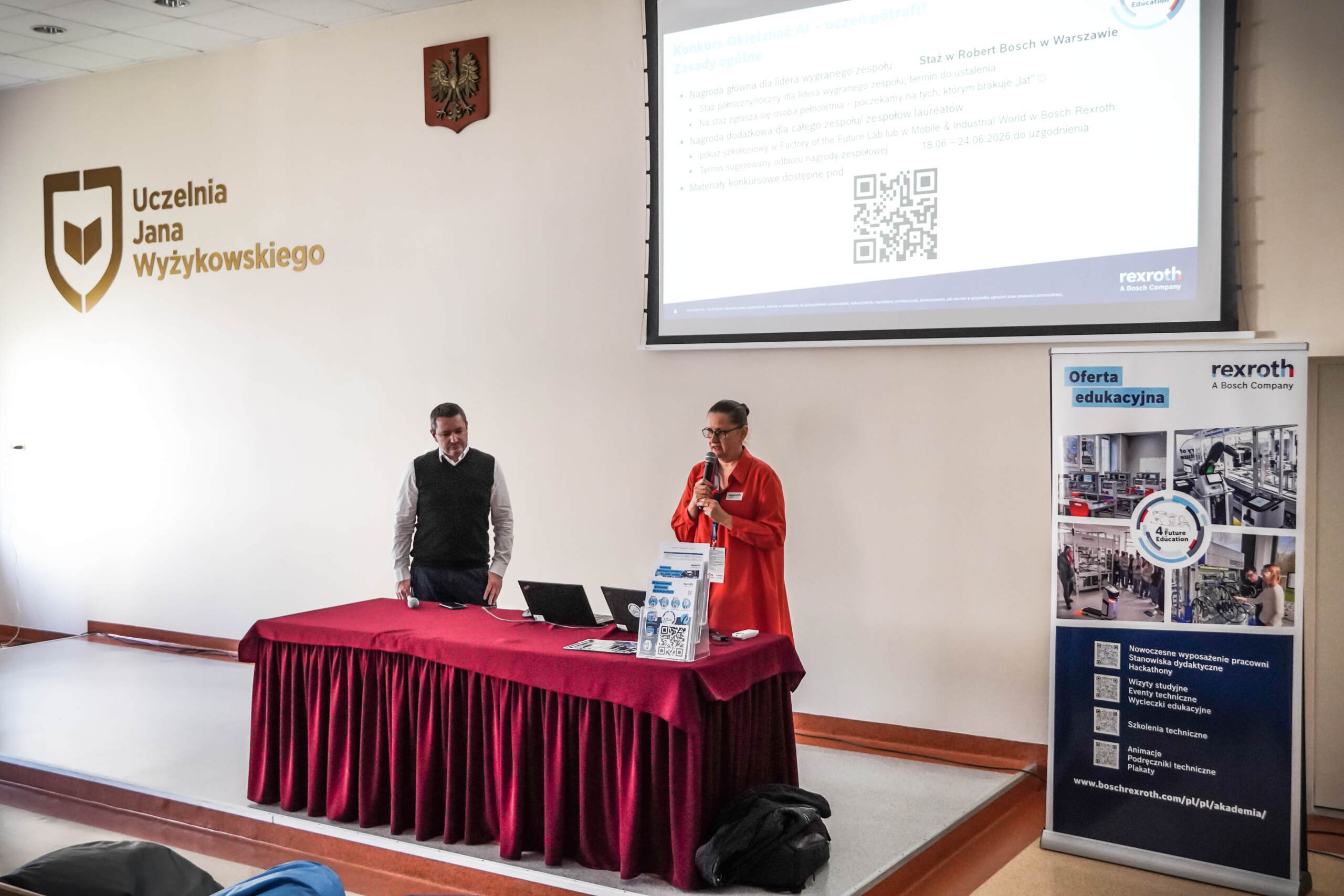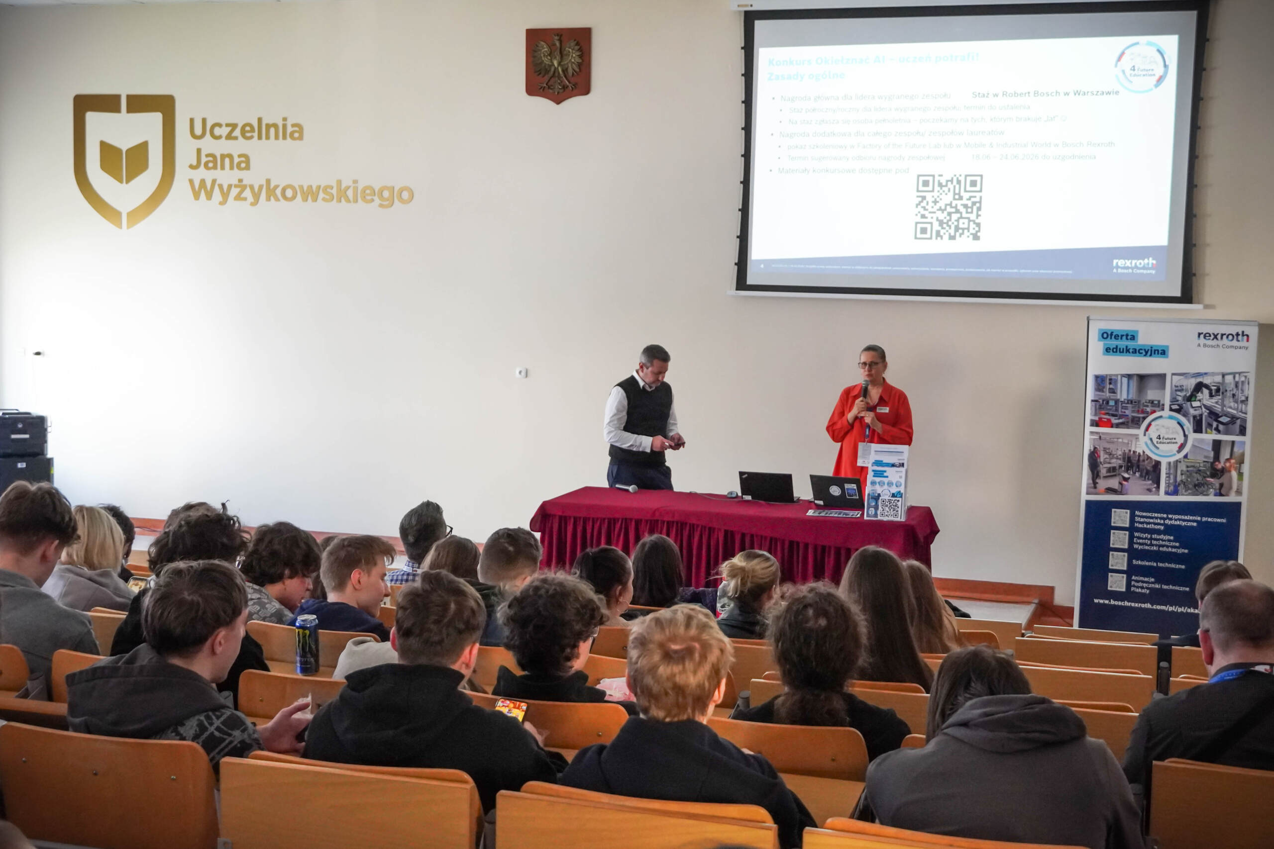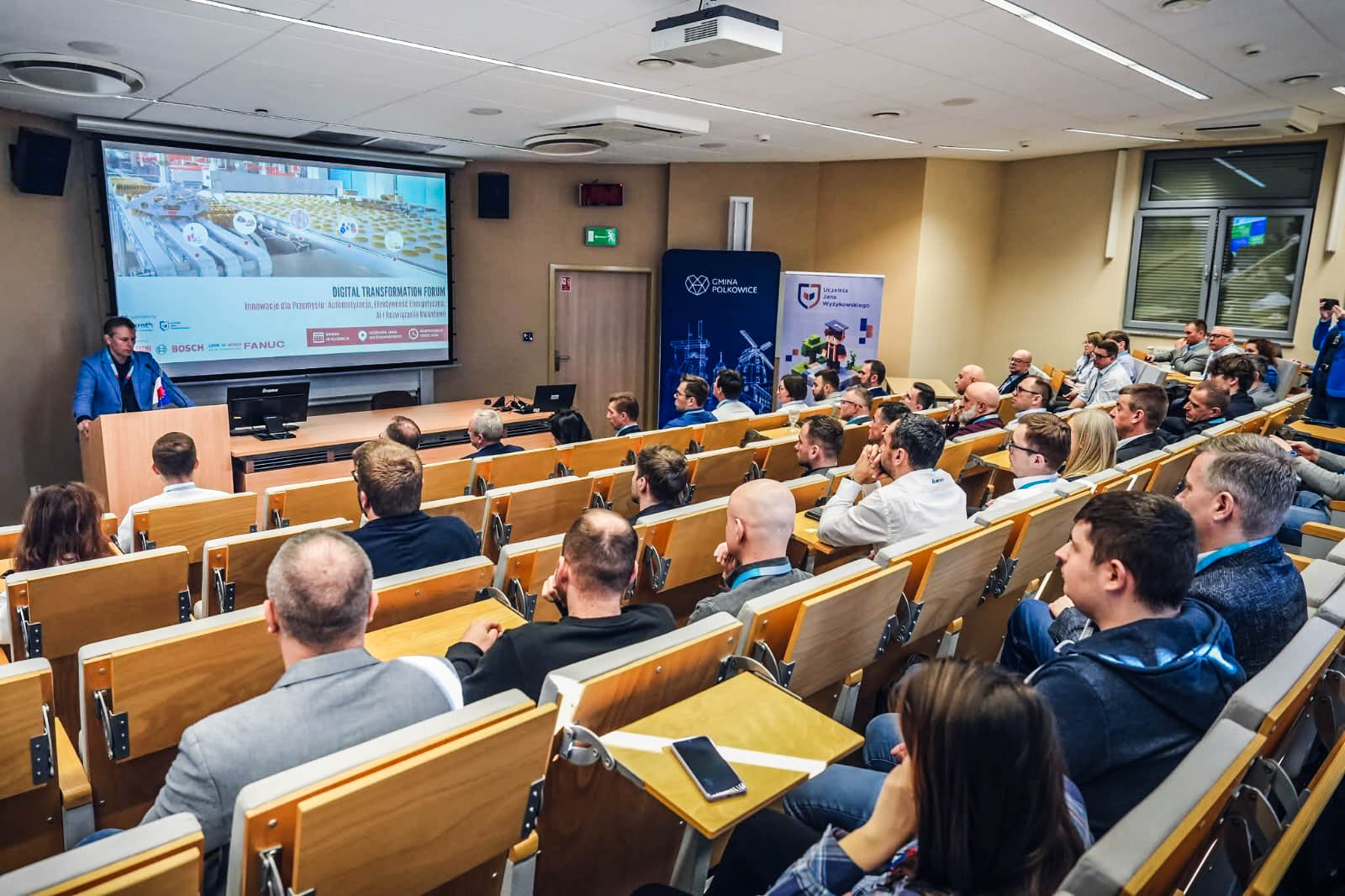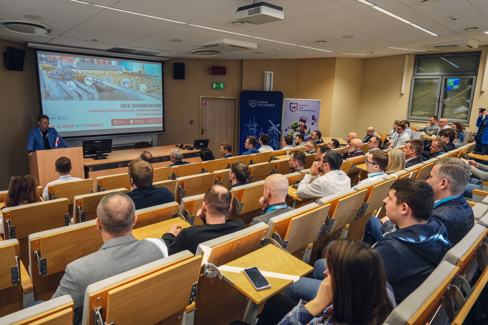 W dniu 18 marca 2026 r. na Uczelni Jana Wyżykowskiego w Polkowicach odbyło się Digital Transformation Forum, poświęcone nowoczesnym technologiom i transformacji przemysłowej. Wydarzenie zostało zorganizowane we współpracy z Bosch Rexroth i zgromadziło przedstawicieli środowiska akademickiego, przemysłu oraz instytucji otoczenia biznesu.