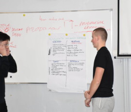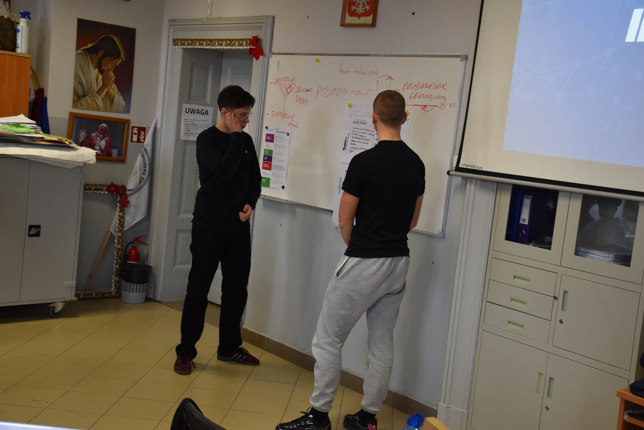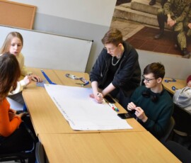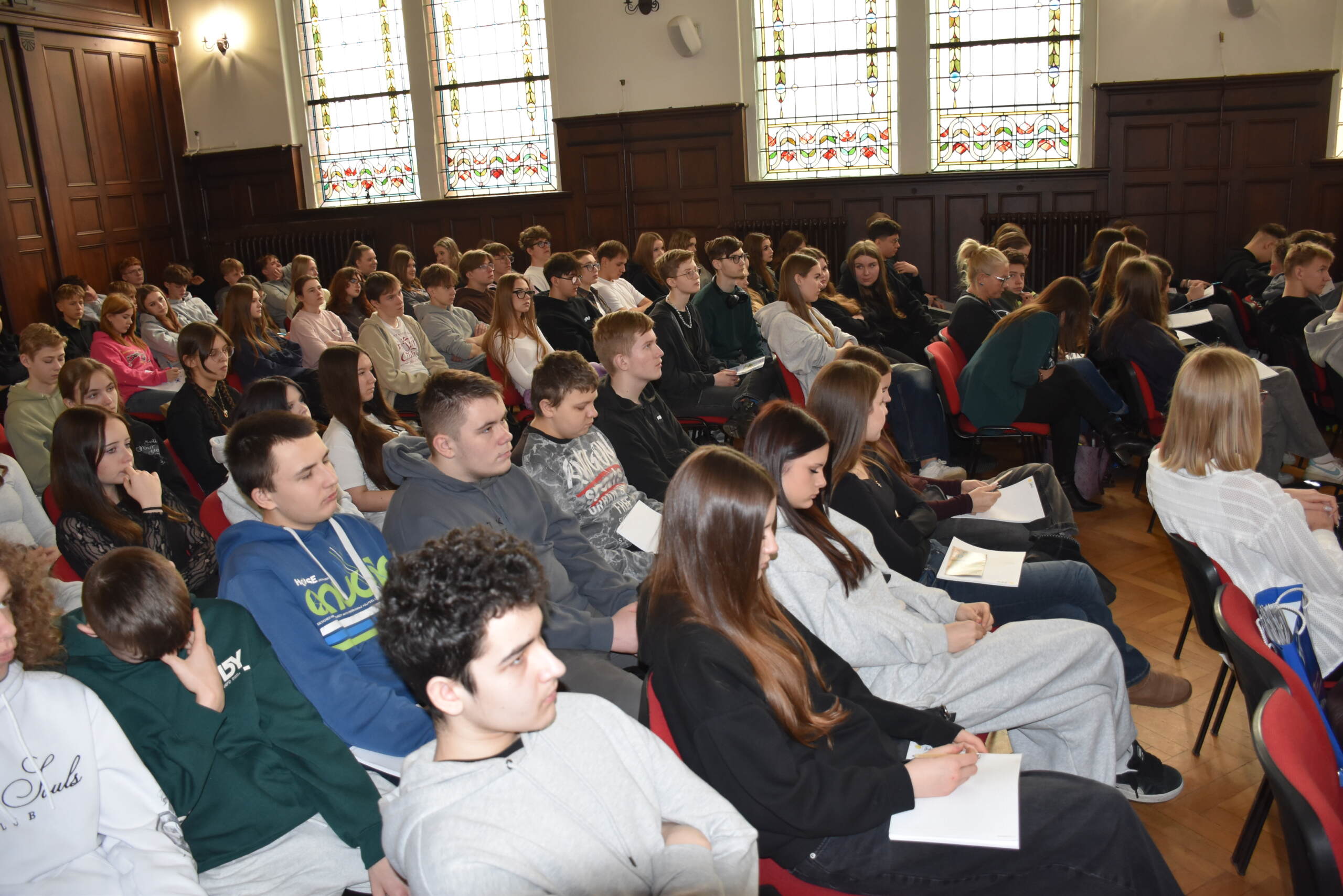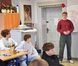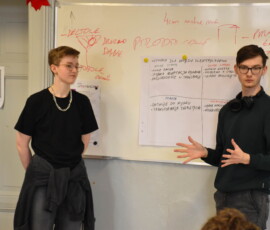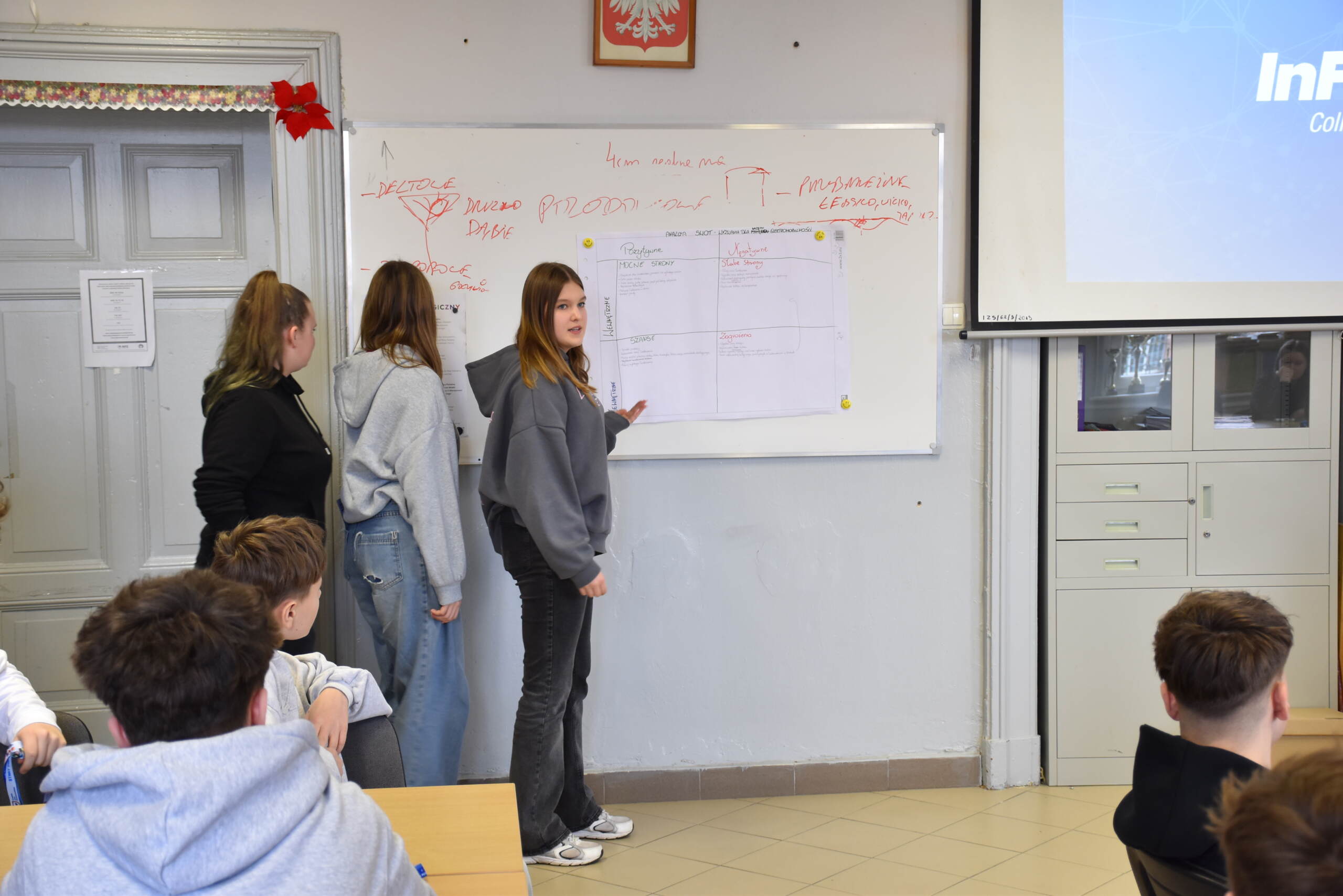 Następnie dr Marek Jaskólski wygłosił prelekcję pt. „Elektromobilność – fakty, mity, geneza i potencjał”, przedstawiając temat w szerokim i praktycznym ujęciu. Część teoretyczna została uzupełniona warsztatami, podczas których uczniowie analizowali szanse i zagrożenia elektromobilności metodą SWOT.