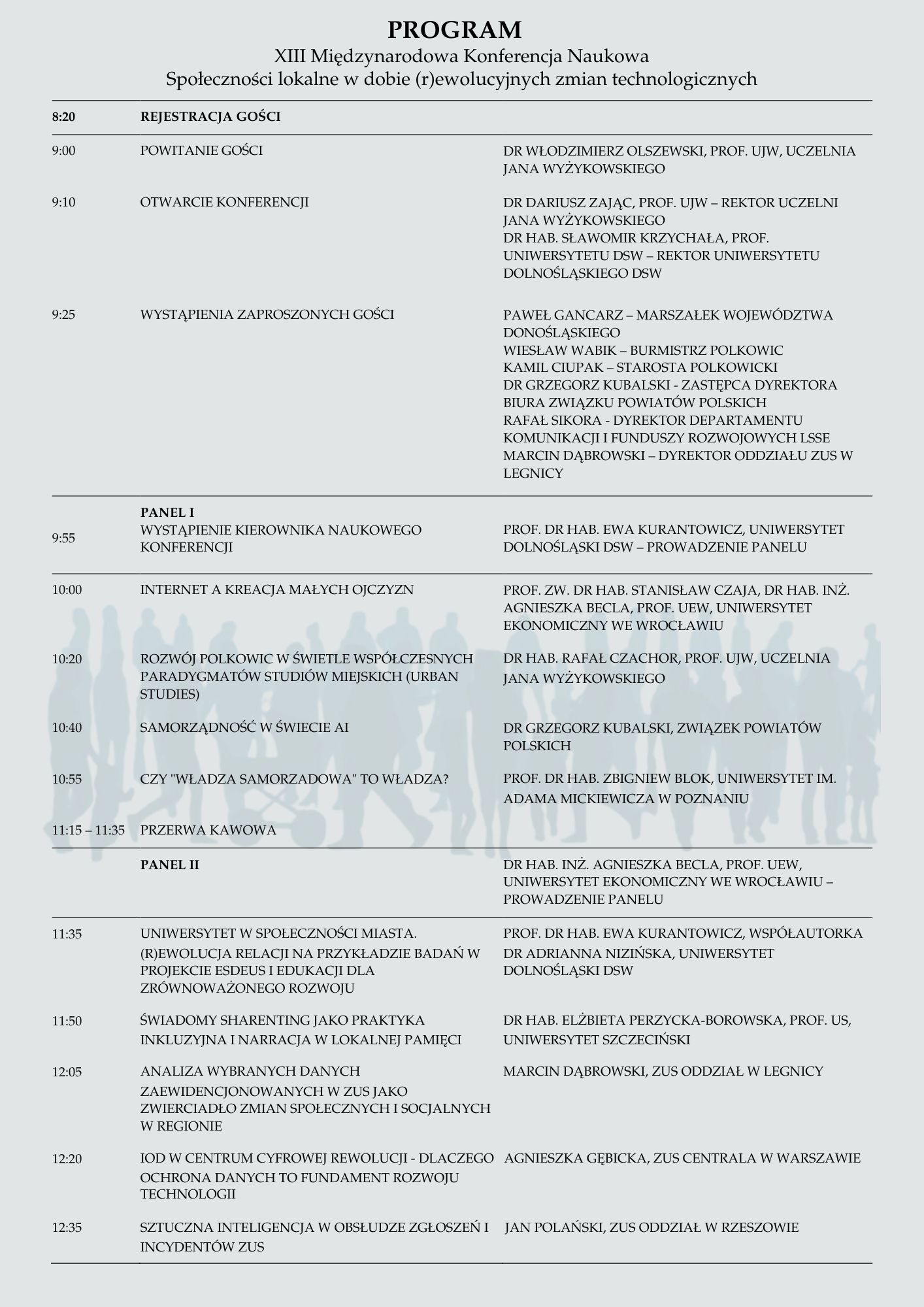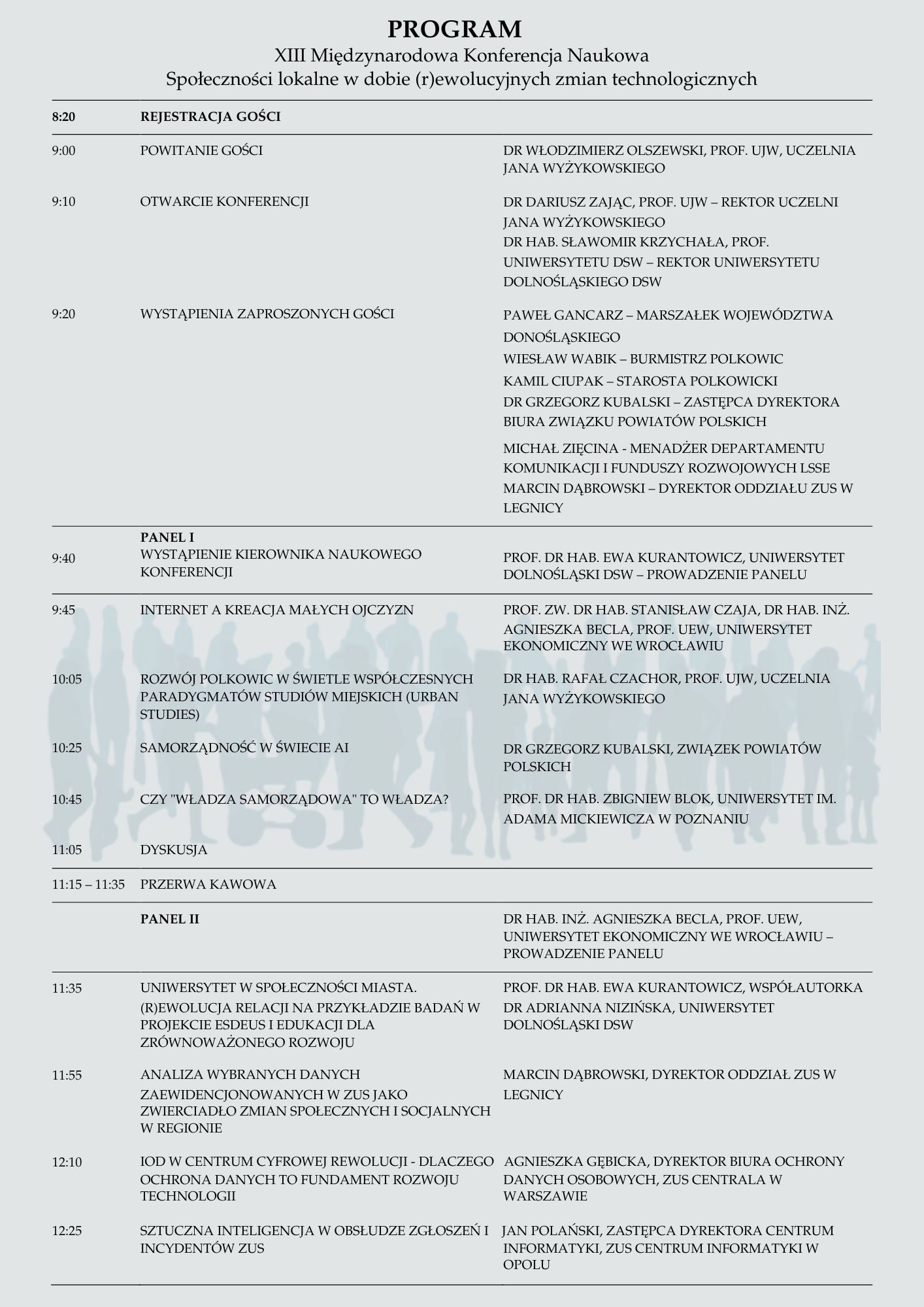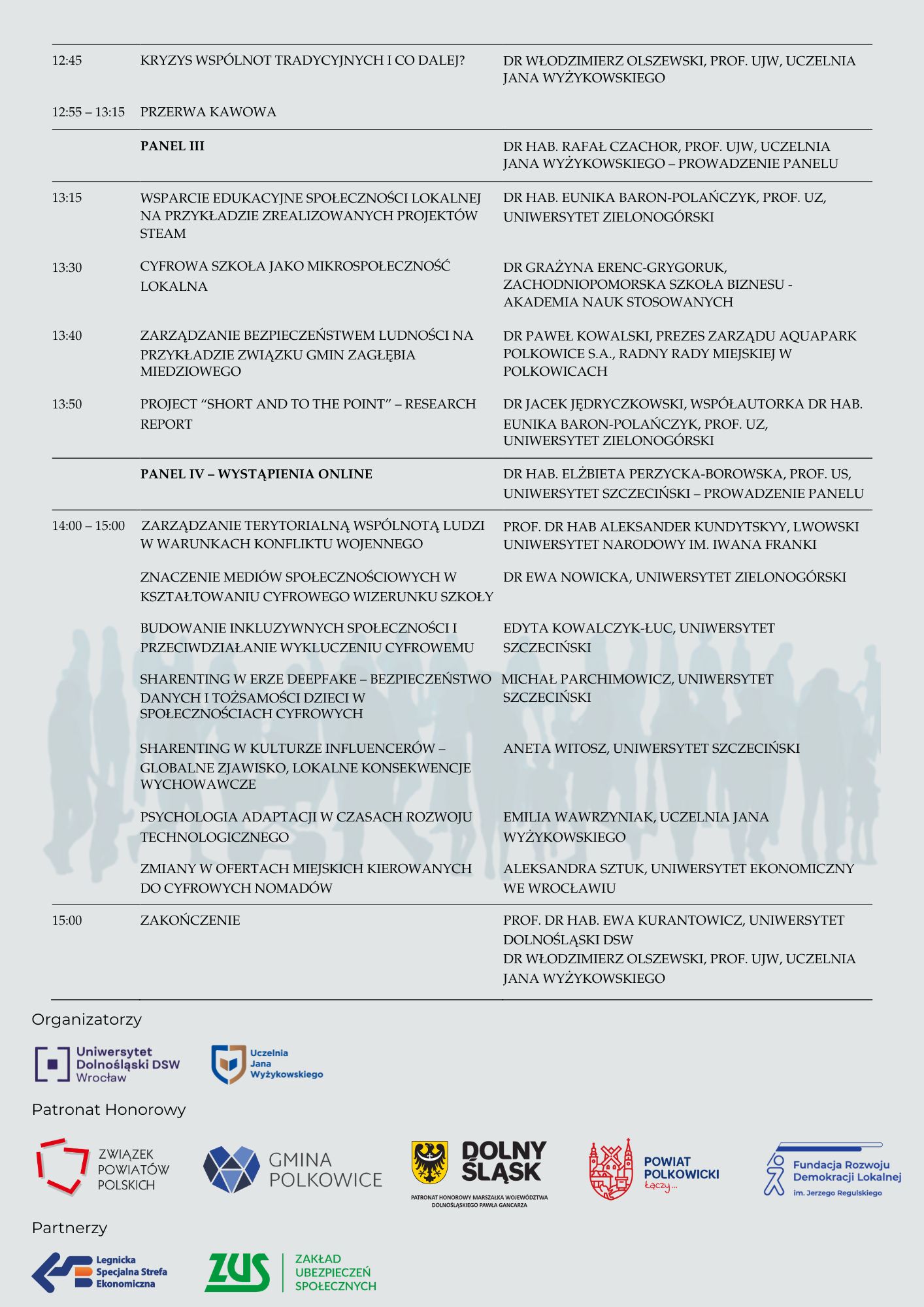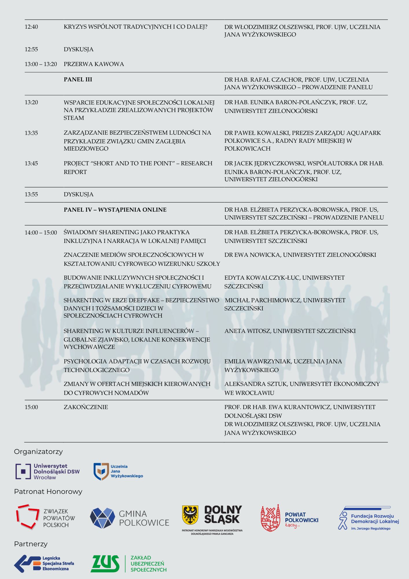 - prof. dr hab. Ewa Kurantowicz – kierownik naukowy panelu społecznego konferencji – Uniwersytet Dolnośląski DSW we Wrocławiu