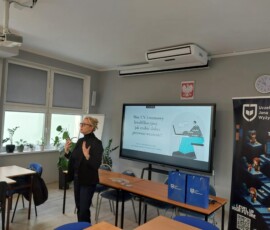 26 lutego odwiedziliśmy Dolnośląski Zespół Szkół w Lubinie, gdzie odbyły się warsztaty dla maturzystów technikum i szkoły policealnej. Uczniowie rozmawiali o wyborze kierunku studiów, świadomym planowaniu kariery oraz przygotowaniu profesjonalnego CV. Spotkanie prowadziła Marta Ambroziak-Sieradzka.